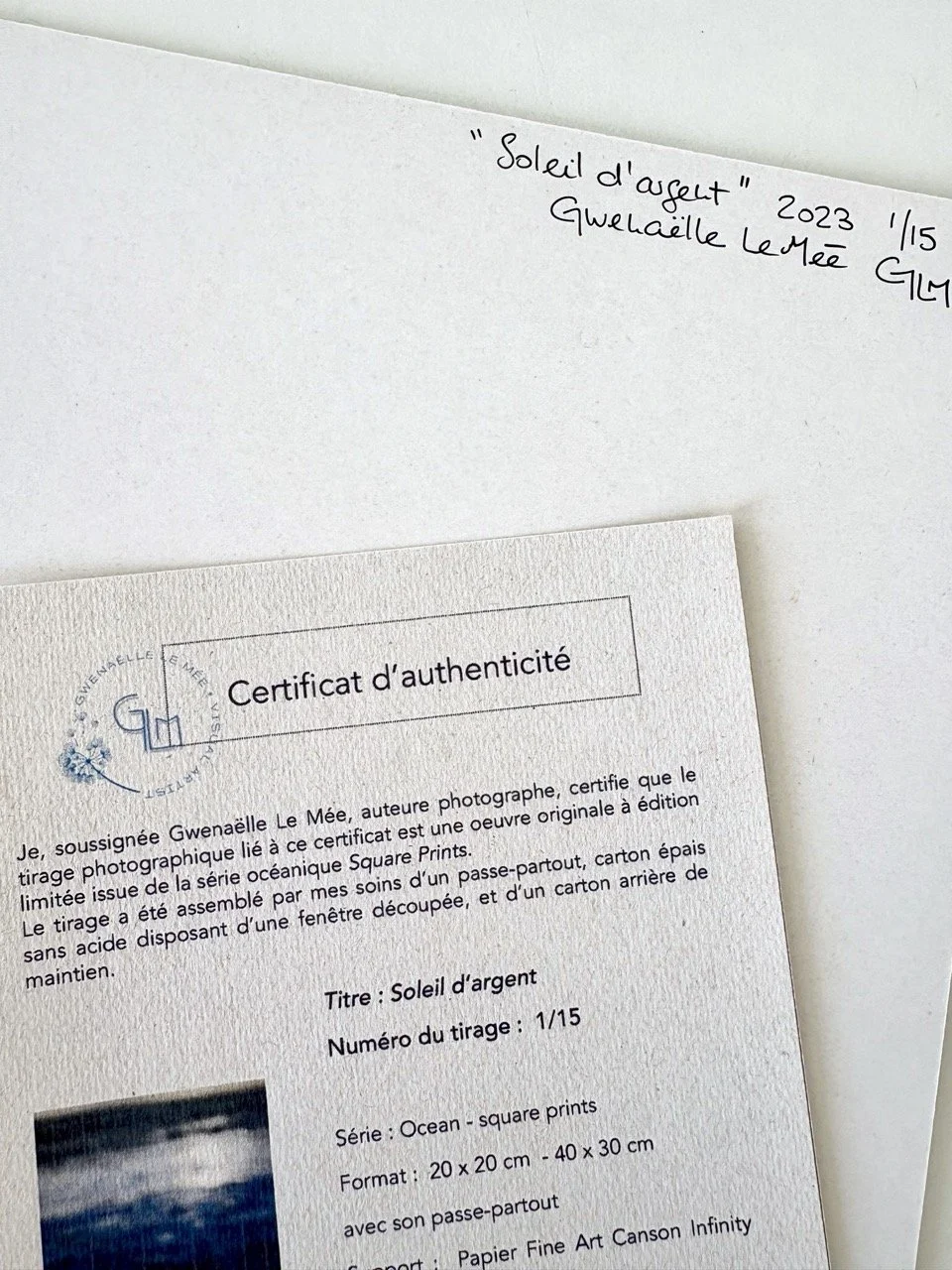 • La photographie est tirée sur papier Canson Infinity Etching Rag est au format carré 20 × 20 cm (marge incluse).